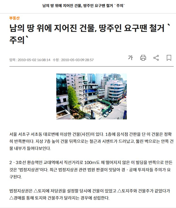 매일경제 기사에서처럼, 법정지상권은 토지주와 건물주의 이해가 충돌하는 지점입니다. 토지주 입장에서는 사전 조사와 철저한 법적 대응이 곧 재산을 지키는 길입니다.