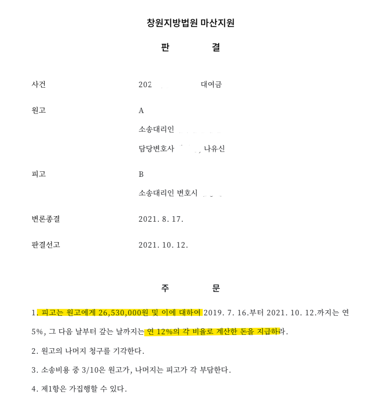 실제로 빌려준 돈을 받지 못하자, 방법이 없어 찾아온 의뢰인분의 승소성공사례입니다.